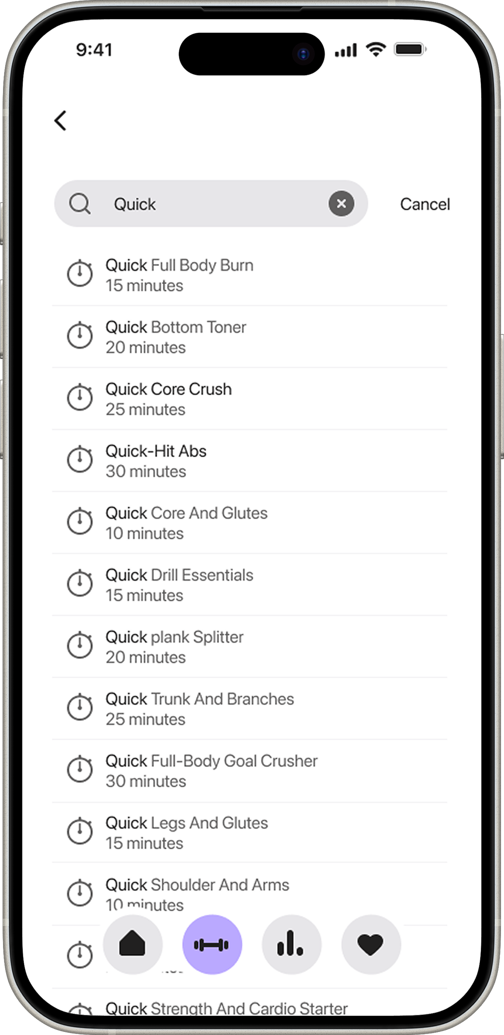 Workouts screen